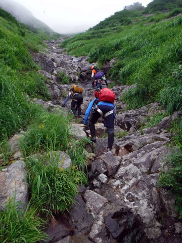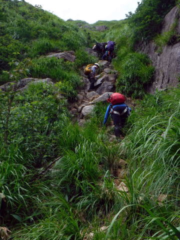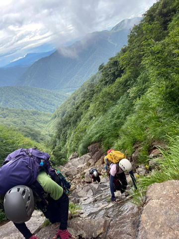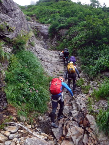 タラタラのセン、巻いたのち、30分ほど休憩へ。少し良くなったようで、山行を続けます。エスケープがないので、ここまでくると救助呼ぶほどでもなければ登る選択肢しかありません。ヒマラーさんは少し辛そうでした。