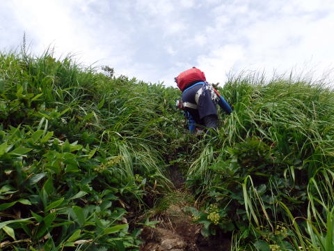 ここからの登りは段々と急になっていきました。稜線は見えるけど、全然近づいてこない。。。。。