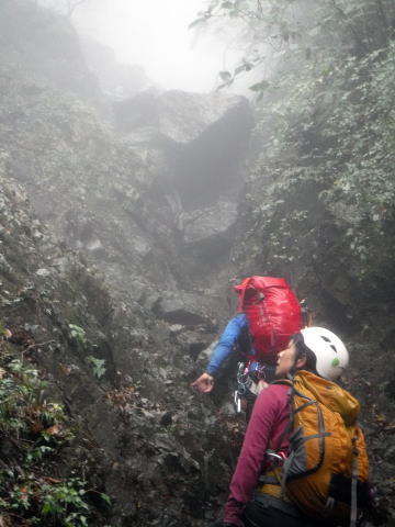 F4 下段は簡単。上段は右のルンゼを行きます。先行パーティーがいたので待ちました。右ルンゼにてこづっているようでした。