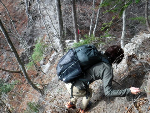 細く一部緊張する箇所もあり。ただ、沢の高巻練習にピッタリ。