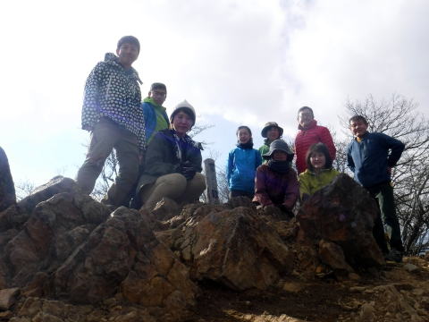 大岩をクリアしたからと言って油断してはいけません。ここからまだ200mほど登らないといけないです。尾根も広くなりますが、地味な登りがこたえます。なんとか無事に皆頂上につきました。神社から5時間ほどかかりました。