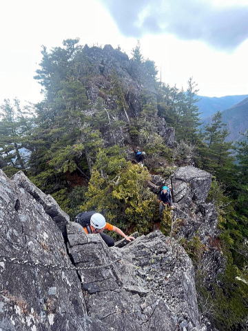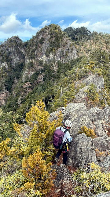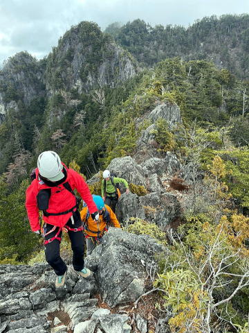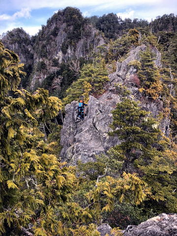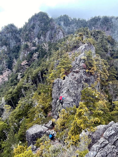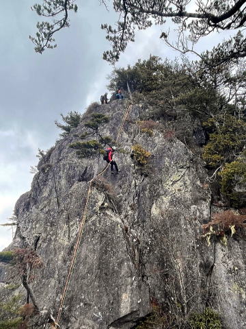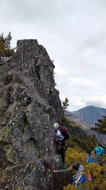 第3岩峰。有無言わずリードさせてもらいました。ガバ多いので登りやすいです。途中のテラスからの取り付きが少し人によっては戸惑っていました。