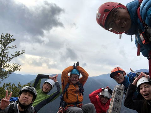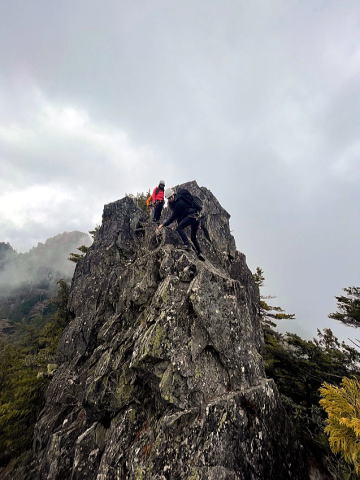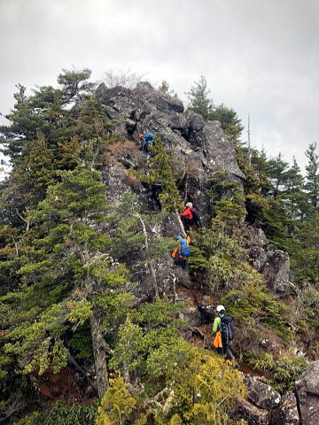 時間的に厳しいので第3岩峰登った先にある頂上で今日は戻ることにしました。曇り空で風も強くとても寒かった。ダウンを出して上で待ちました。