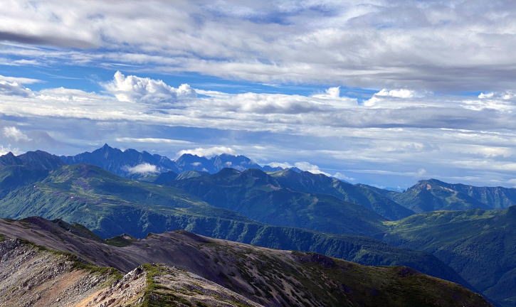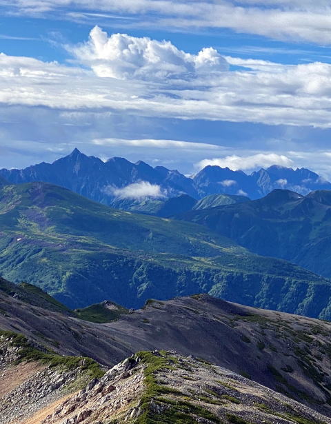 薬師岳へのアタック途中で薬師平に差し掛かった際に、槍ヶ岳などのよく聞く名前の山が姿を現した時にはなんとも言えない感動を覚えました。