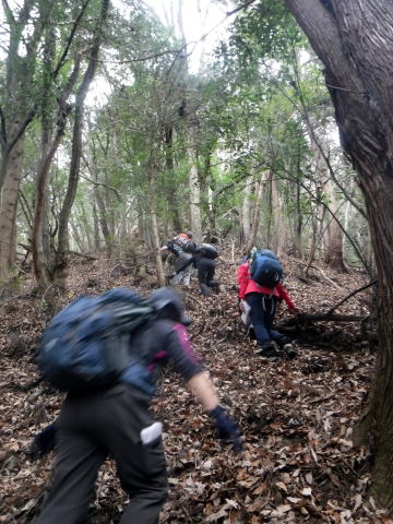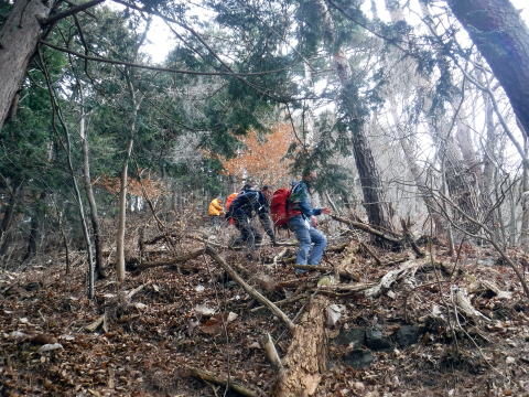 町の文化財になっている像のある神社の裏手から登る。ほぼ廃道なのかな。しばらく踏み跡から離れて急斜面を登る。
