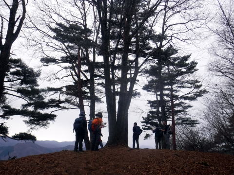 荻ノ丸からは整備された登山道を歩く。犬目丸を過ぎて開けた地形の出っ張りに着く。前方が開けて眺めも良さそうなのだけど、ちらちらと霧雨のようなものが落ちてくる。