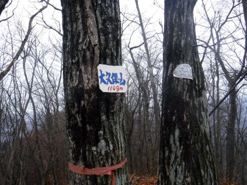 大久保のコルを過ぎて少し登り返して大久保山1109m、ここから登山道を離れて南南西方向に尾根を下ります。
