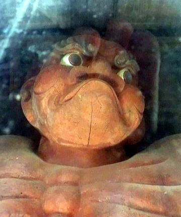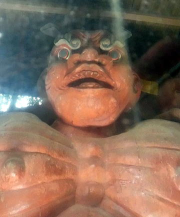 登り口の八幡神社の仁王像。目がくりくりっとして、ちょっと愛嬌があります。