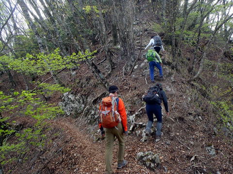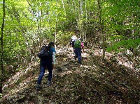 ちょうど滝入り峰あたりがツツジの見頃です。いちいち立ち止まっては綺麗だねぇと声をあげます。今年の新緑は2週間は早い気がしますが、どうでしょうか。