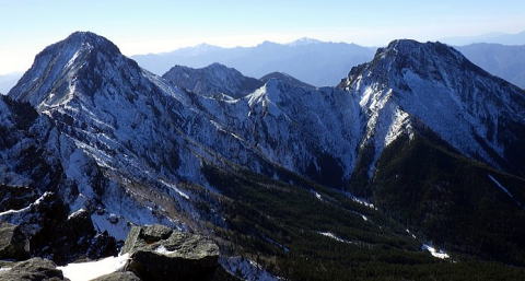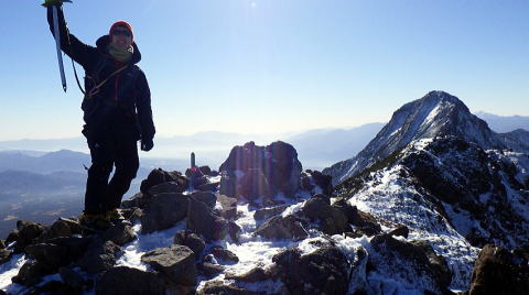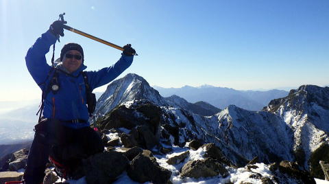 さらに、岩・ザレ、短いはしごや岩場のアイゼン歩きを楽しみつつ奥の院到着。この日は快晴、360°の絵にかいたような眺望をいただきました。