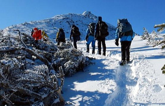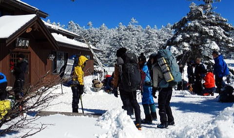 天気は晴れ、ほぼ無風、 0℃くらい。初日の行程は渋の湯から黒百合ヒュッテまで。メンバ ーは雪山ビギナー4 名と引率のエキスパート 2 名の計