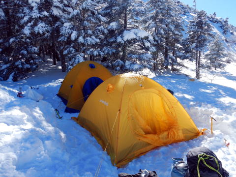 初心者はなす術なく、ボス達は斜面を駆けずり回っての捜索。救出不能かと思われたテントをボスが持って降りてきたときは、山の神様が降臨したと思った。