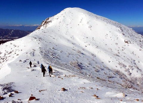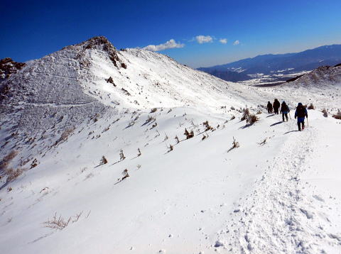 スパッツ装着・ピッケル準備し、11 時頃渋の湯より歩き始め る。