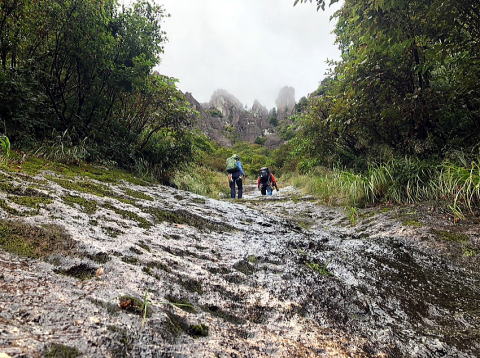 ・前日まで雨、当日も時折霧雨で、登山道はぬかるみと湿った落ち葉でかなり滑りやすかった。特にアプローチは片側が切れ落ちているところが多くあった。