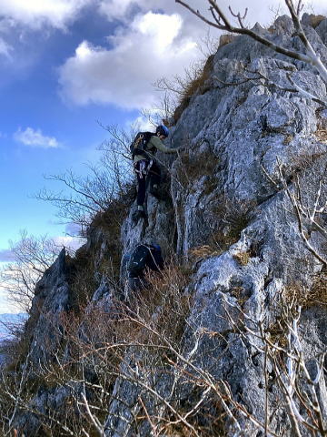 小鹿野二子山への登山口としてはややマイナーな志賀坂峠登山口からスタートしました。車で行けるなら、坂本登山口からの道より眺望が良くお勧めです。尾根に出ると、これから向かう二子山が正面に見えてモチベーションが上がります。魚尾道峠から先はクライミングエリアになっていて、少し見学させてもらいました。
