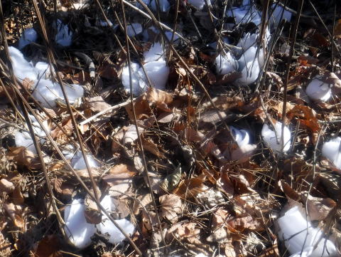 朝日曽雌集落から南東に尾根を辿って、1224mヒカゲ舟のピーク辺りにシモバシラの花がいっぱい見られました。