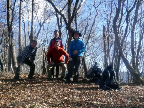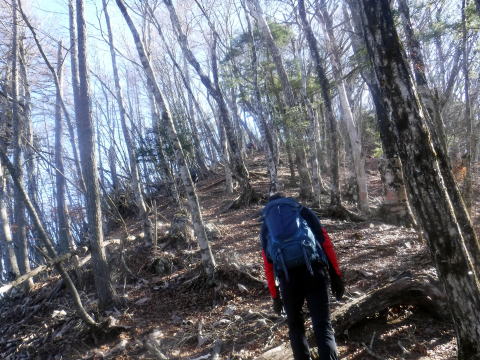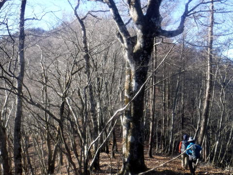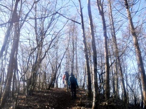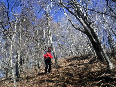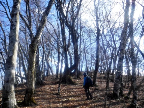 菜畑山の山頂付近、緩やかに雑木の森が広がっています。登りきつかったねえ。