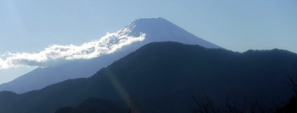 逆光の富士山、今日は朝の登りからずっと太陽に向かって歩いています。