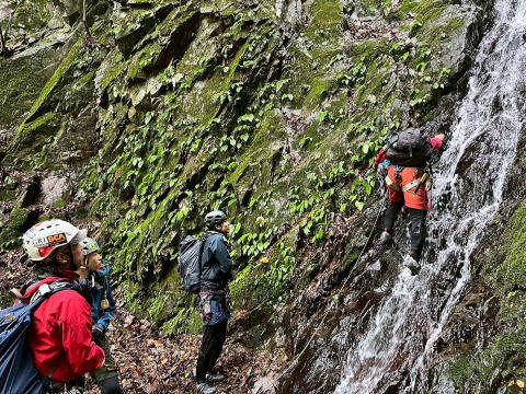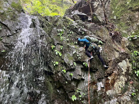 (滝登攀練習にぴったりの沢だがしっかり登れてロープワークしっかりわかっている人が1人はいないといけないです)
