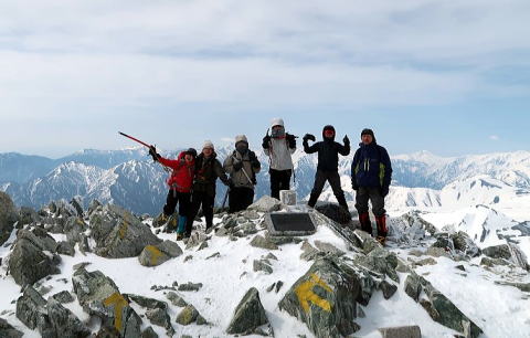 気温が下がり雪がしまり歩きやすい。時折雲に切れ目も見えてくる。