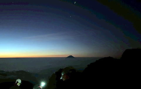 (※雲海の向こうに富士山、日の出前荘厳な眺め・・・)