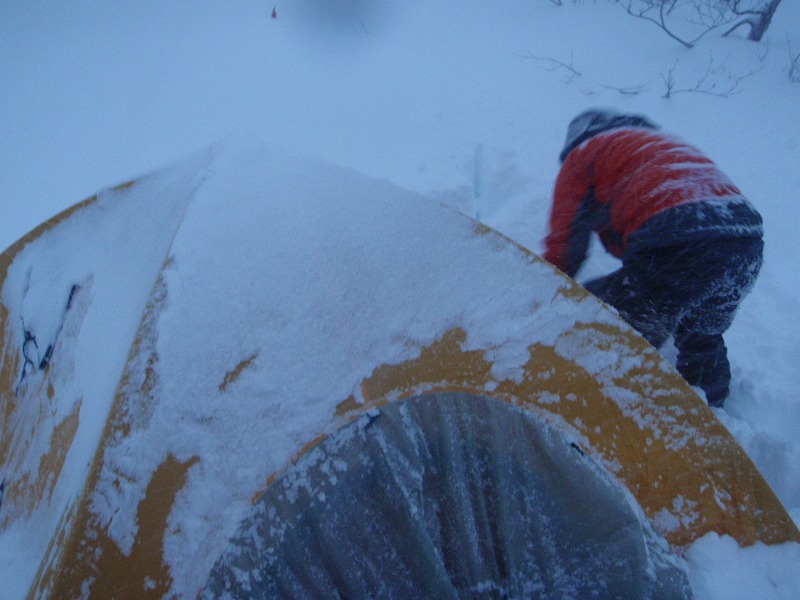 朝方4:00ごろ、テントが雪に埋もれてることに気づきました。