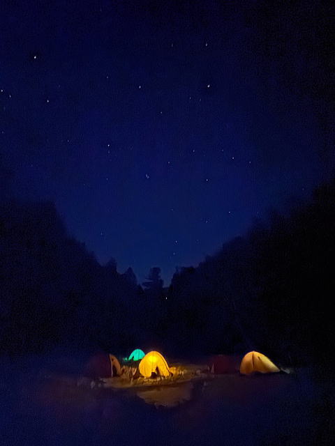 ほろ酔いで星空を眺めているうちに少しずつ疲れも和らぎます。長年連れ添ったナンガ600にダウン上下で潜り込むと、あっという間に眠りに落ちました。