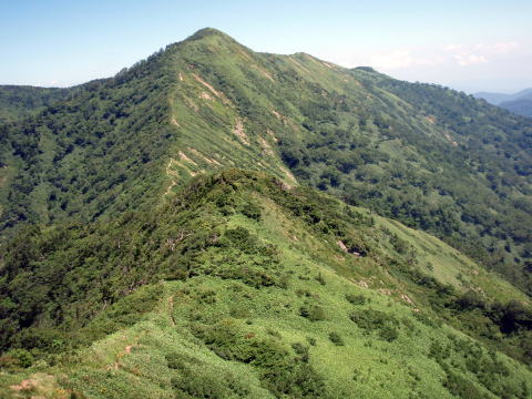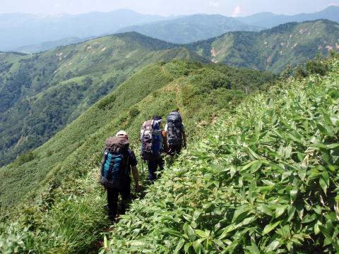 山頂の人と一言二言、苗場山につながる山道が整備されたと聞いたけど、もう藪に返っているんですね