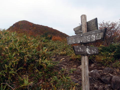 小東岳山頂です。山頂標識の山名部分はもう朽ちはててありません