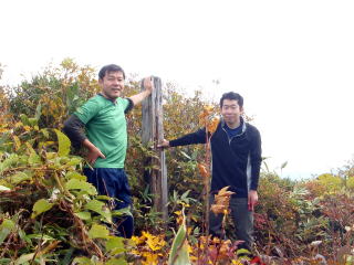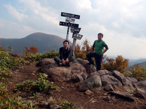 南面白山の山頂にて。後ろの山は大東岳です