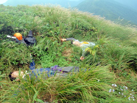 ドタッ、山頂はふかふかの草むらでした