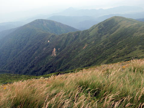 山塊主峰の和賀岳方面の眺めです。見えているのが和賀岳かどうかは分かりませんが