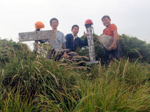 山頂の石には、昭和3年8月17日の日付と運び上げた6人の名前が刻まれています