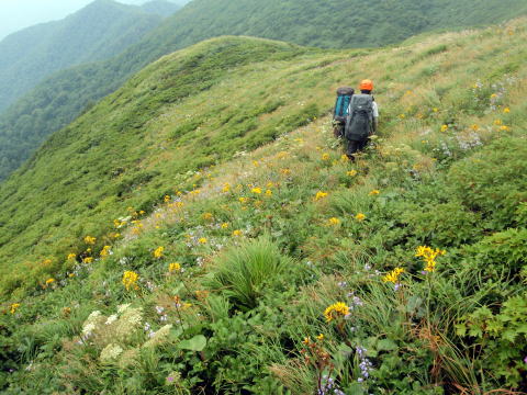 お花畑の尾根が続きます
