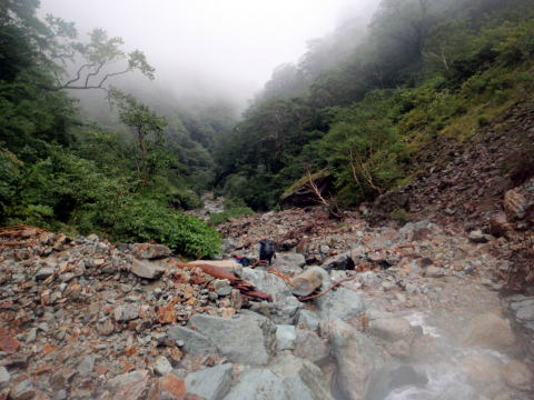 きつかった、まともに左俣を下っていれば今頃はテントの中だよね。これが「登山体系」に小滝が続いて楽しいと軽く書かれている右俣だったか・・