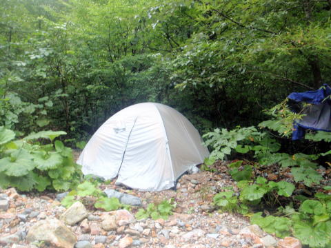 砂防ダムをいくつか通り過ぎて、山道が出てきてから今日の泊まり場です
