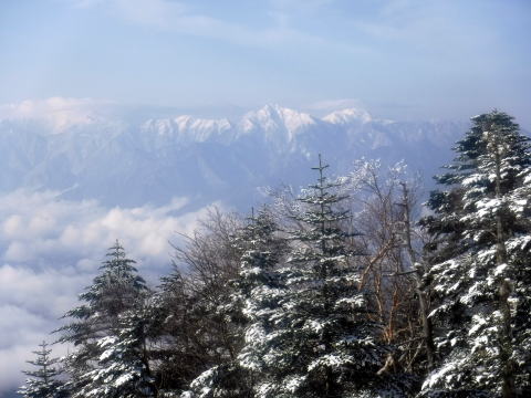 (※遅くまで雪がチラチラ降っていたようですが、朝起きたら快晴の天気でした。それでもってちょっと出遅れました。南アルプスが見えています。