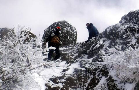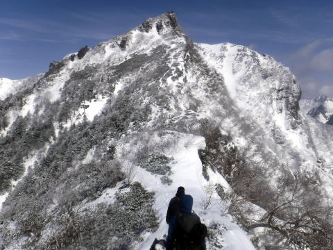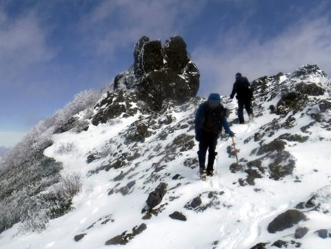 2日目は気温が上がっていたこともあり、前三ッ頭を過ぎたあとはどんどん雪が減っていき、岩肌が見えている場所も多くありました。