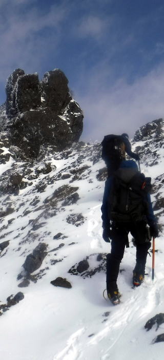 私自身、ワカンを履いての長時間山行は初めての経験だったため、なかなか前に進めず苦労しました。。