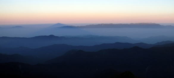 (※雲海の向こうに富士山、日の出前荘厳な眺め・・・)