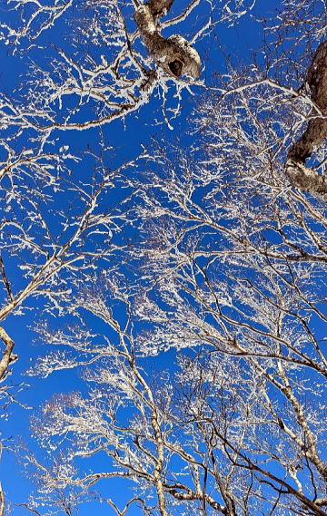 青空と樹氷のコントラストがとても美しく、富士山が見えるスポットもあり、